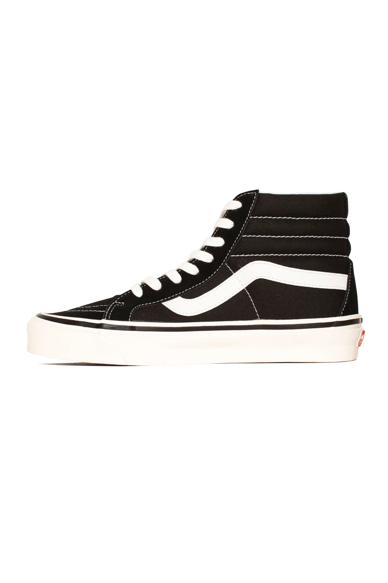 The Anaheim Factory Sk8-Hi 38 are a tribute to the first Vans factory in Anaheim, California: they recall the details of the original Sk8-Hi and offer more modern comfort with an improved UltraCush insole. They also feature details that recall the past, such as a higher shiny foxing ribbon, cotton laces, original cotton drill lining and suede upper to complete the look.
